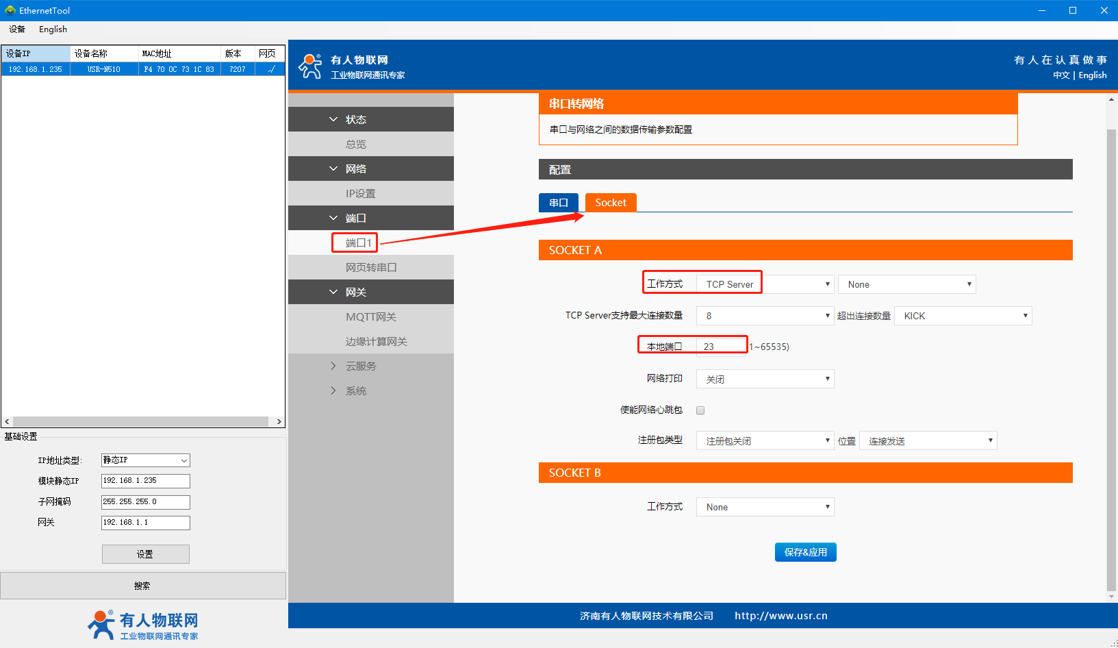 4>設(shè)置socket(網(wǎng)絡(luò))參數(shù):在本案例中保持N510-H7的默認(rèn)參數(shù)
