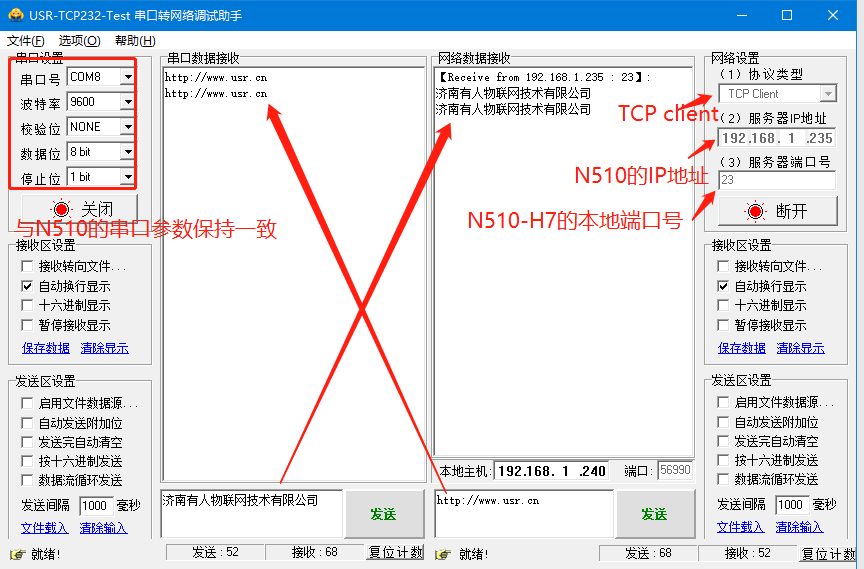 1>硬件連接:N510-H7的串口通過USB轉(zhuǎn)232/485/422連接到電腦上,電腦和N510-H7接在同一個(gè)路由器上