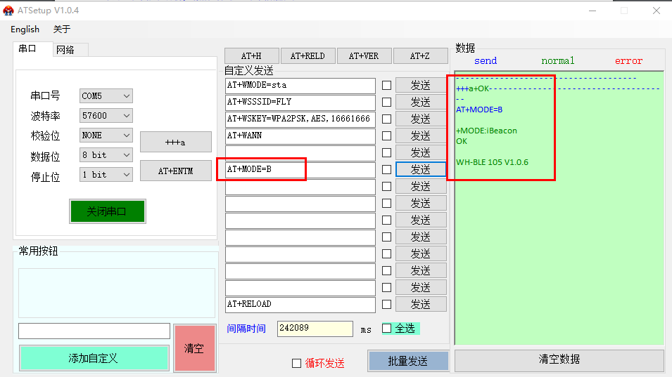2. 切換當(dāng)前工作模式為廣播模式,切換完成后自動重啟: AT+MODE=B