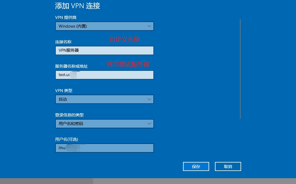 設(shè)置VPN服務(wù)器參數(shù),本案例用的是我司的測(cè)試服務(wù)器