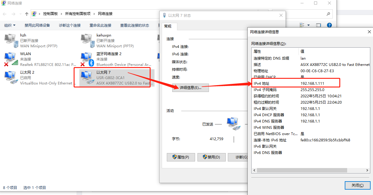5、電腦獲取到的IP也為設(shè)置的IP地址