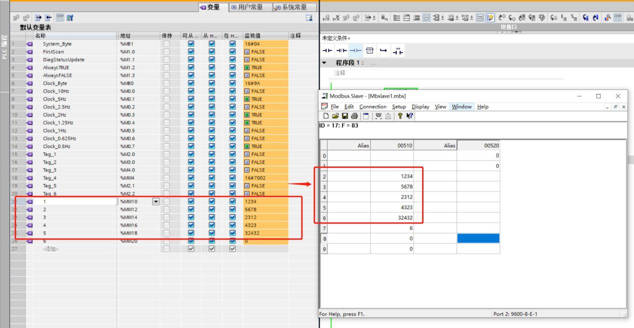 6,此時,代表數(shù)據(jù)報文往回正常,將modbus slave 中的地址設(shè)定為不同數(shù)據(jù),然后在電腦端進行數(shù)據(jù)監(jiān)控