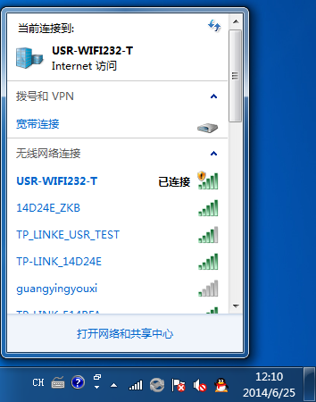 2:電腦搜索WiFi模塊的網(wǎng)絡(luò),并連接上,查詢電腦獲取到的IP地址。