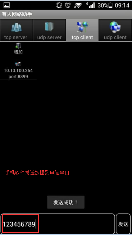 12:手機助手發(fā)送數(shù)據(jù),電腦打開一個網(wǎng)絡(luò)調(diào)試助手,接收手機端發(fā)送的數(shù)據(jù)。