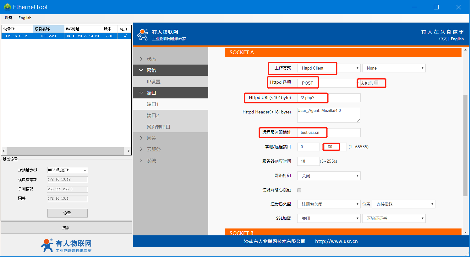 注意:上述參數(shù)是用我司的http測試服務(wù)器,如果客戶接自己的http服務(wù)器,需要根據(jù)實(shí)際情況修改參數(shù)