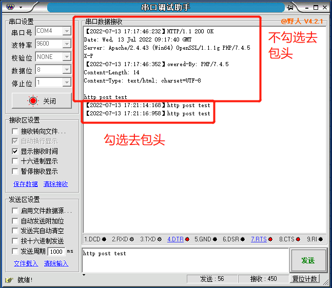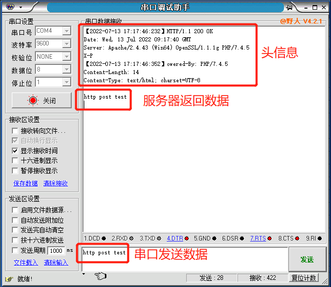 4. 數(shù)據(jù)測試:我司測試服務(wù)器的功能就是:串口發(fā)送數(shù)據(jù)給服務(wù)器,服務(wù)器將數(shù)據(jù)原封不動(dòng)的返回