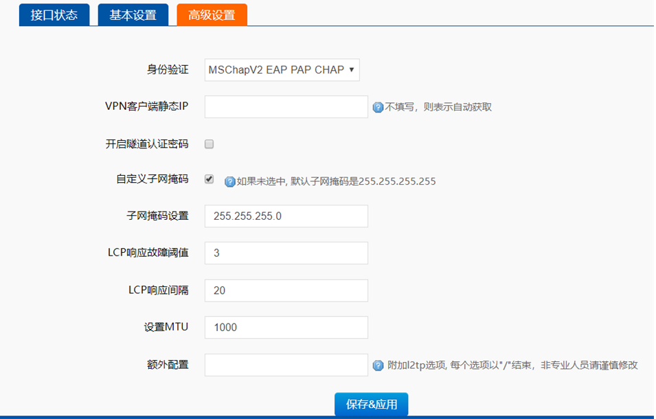 高級設(shè)置:身份驗證選擇MSCHAPV2 EAP PAPA CHAP。