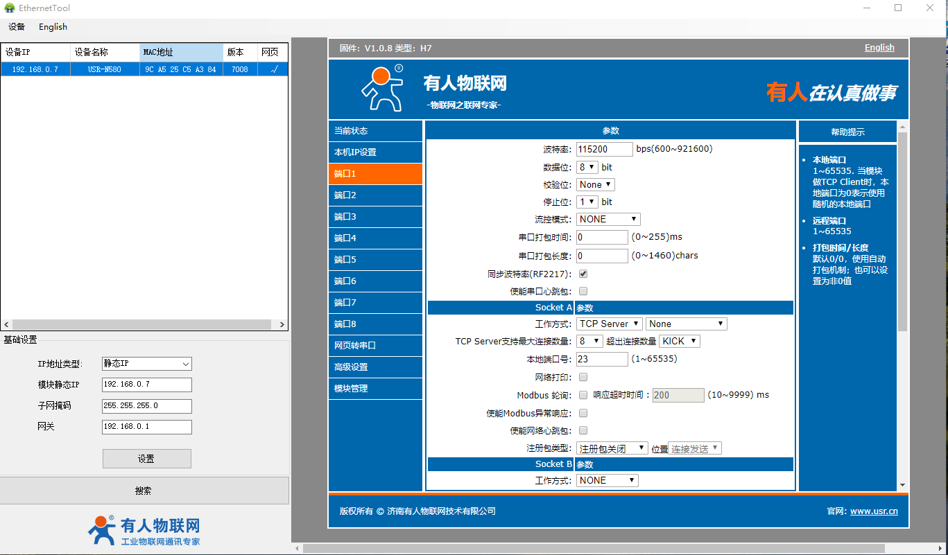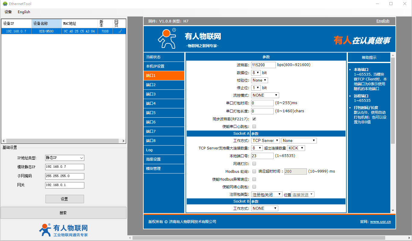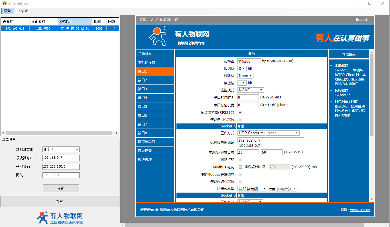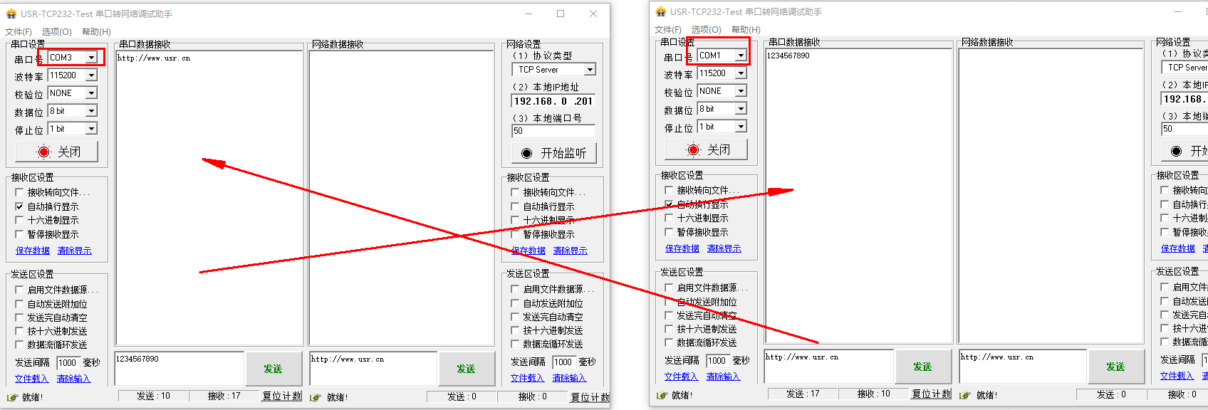 USR-N580和虛擬串口局域網(wǎng)一對一通訊案例