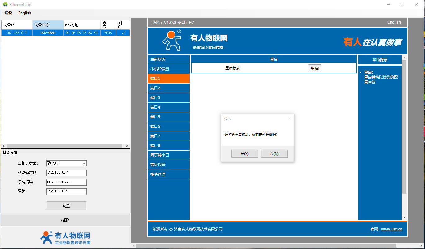 1、USR-N580-H7產(chǎn)品 數(shù)量1個