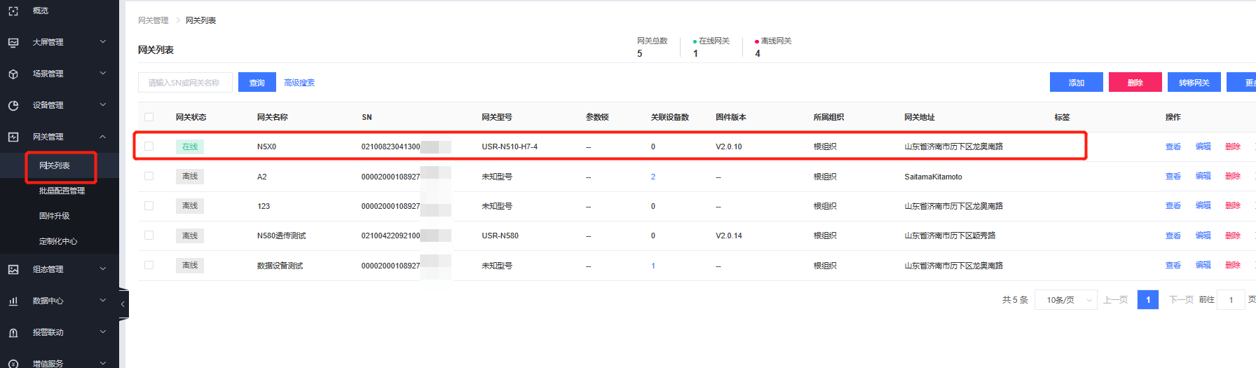 6、以同樣方式添加第二個(gè)N5X0,同樣勾選有人云透?jìng)骱蟊4嬉幌拢梢钥吹?個(gè)N5X0在云端都在線了。