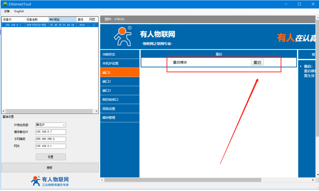 USR-TCP232-ED2的H7系列設(shè)置軟件:http://www.lifj.com.cn/Download/383.html