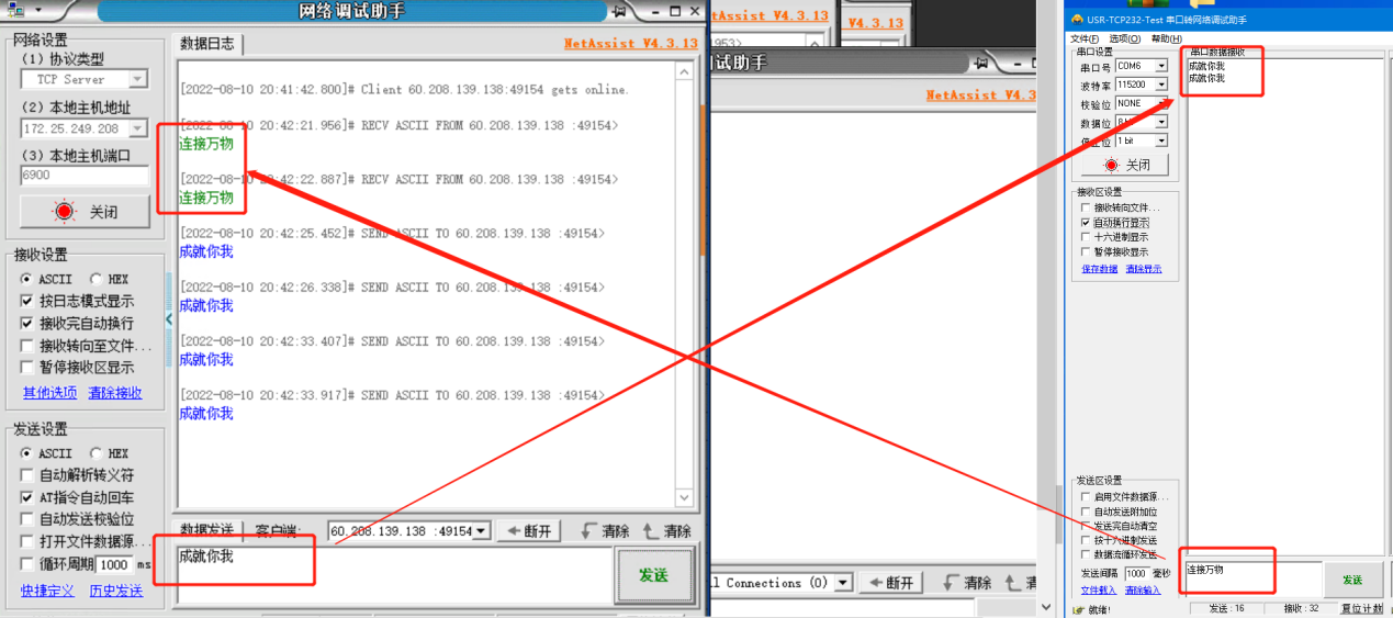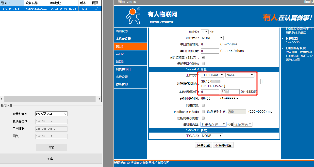 USR-TCP232-ED2 連接遠(yuǎn)程服務(wù)器通信測(cè)試