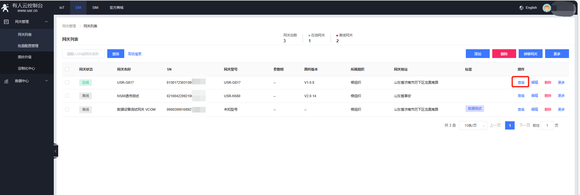 2)進(jìn)入“DM平臺(tái)”進(jìn)行網(wǎng)關(guān)運(yùn)維