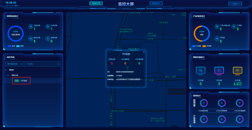 (4)選擇大屏管理----監(jiān)控大屏----選擇創(chuàng)建好的設(shè)備,即可看到定位信息