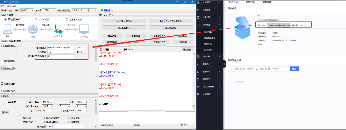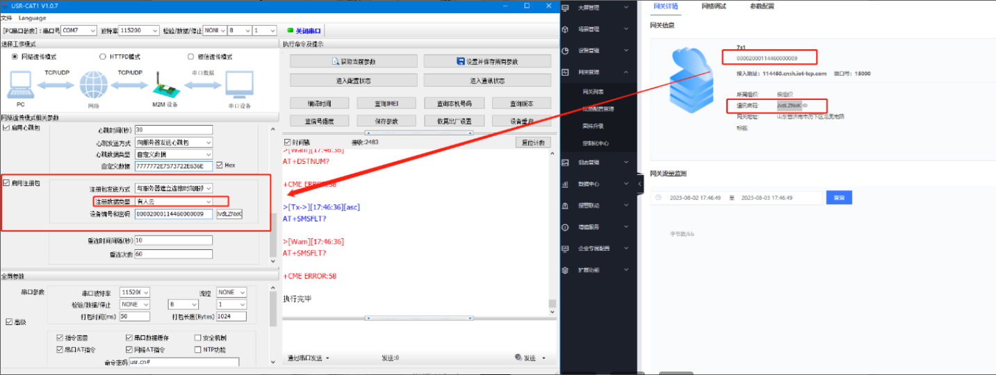 填寫地址和端口為云平臺接入地址, 15000并啟用注冊包(填寫有人云生成的設(shè)備編號跟密碼)