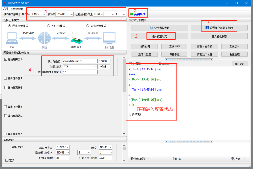在所有參數(shù)配置完成后保存并設(shè)置所有參數(shù)”,即可看到模塊重啟。