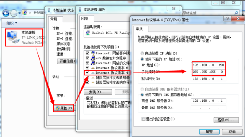 2. 給電腦設(shè)置靜態(tài)IP,要與S1的IP在同一個(gè)網(wǎng)段(S1默認(rèn)參數(shù)見表1)。