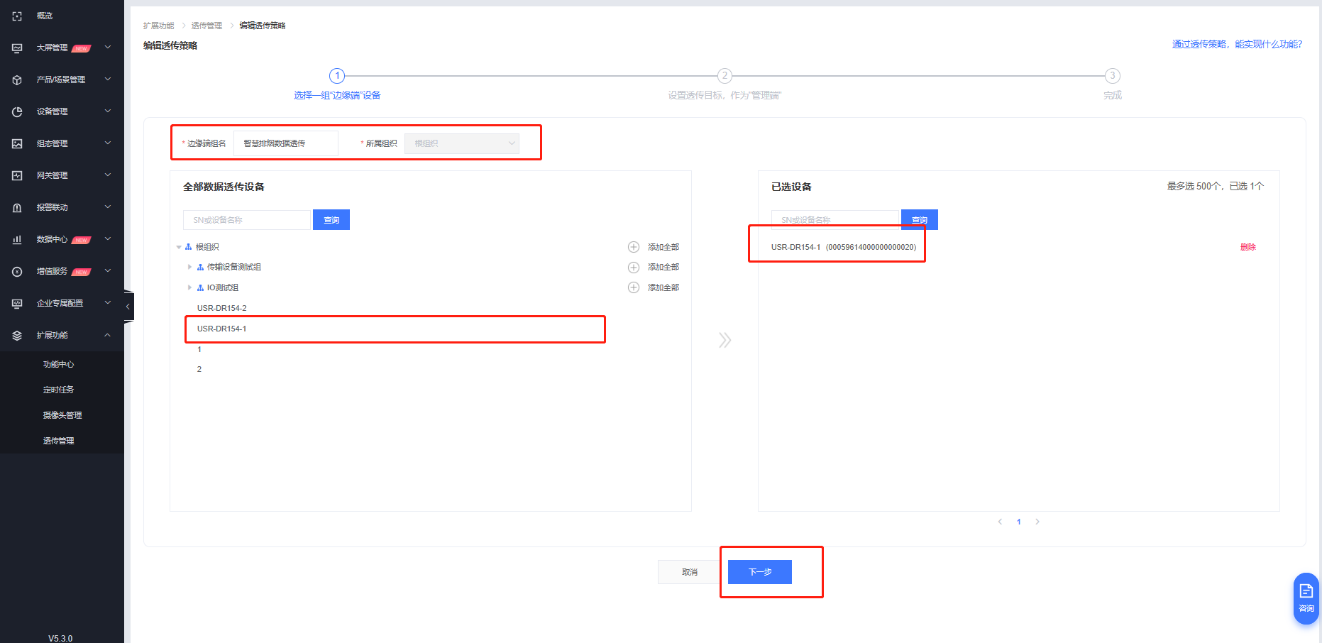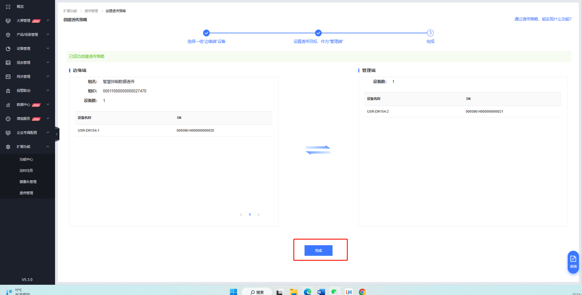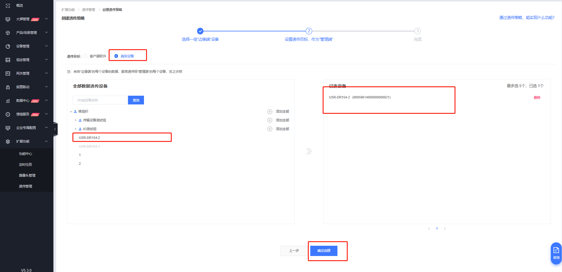 3. 創(chuàng)建透傳組:有人云擴(kuò)展功能-透傳管理-創(chuàng)建透傳策略