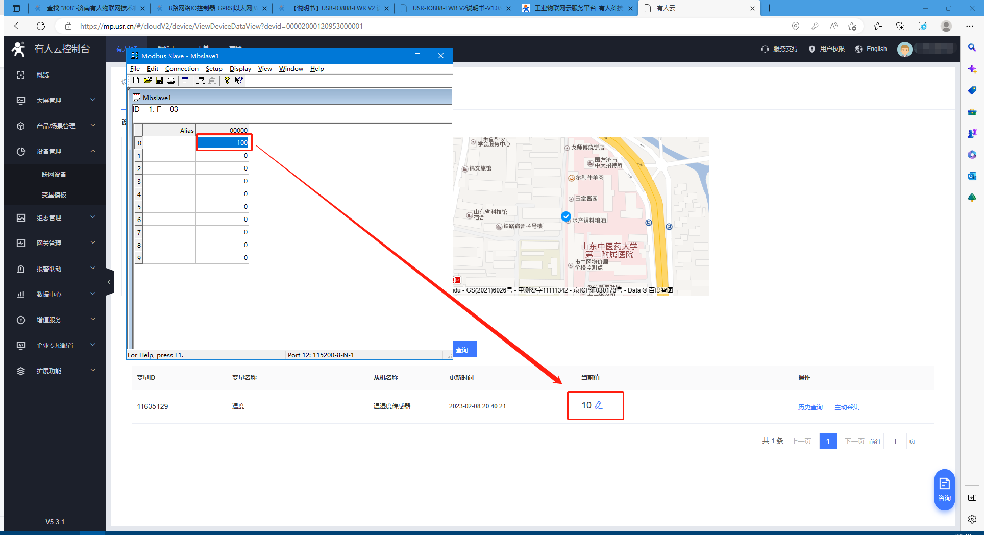 云端下發(fā)采集指令,modbus slave模擬串口設(shè)備上傳數(shù)據(jù)