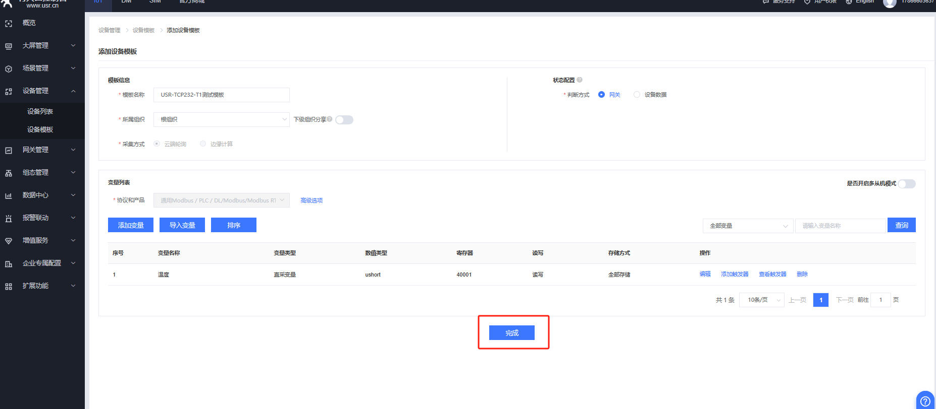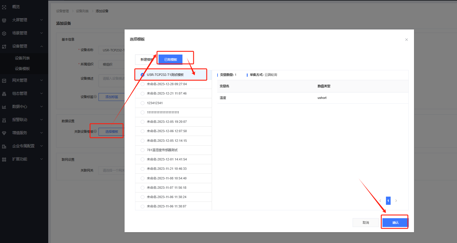 4.添加設(shè)備并綁定模板和網(wǎng)關(guān)