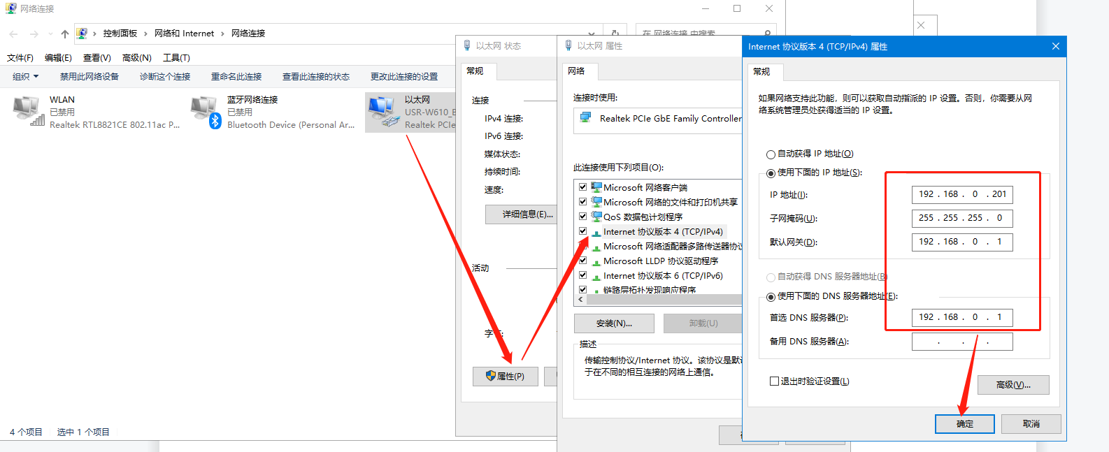 1.T1和電腦網(wǎng)口通過網(wǎng)線直連,電腦設(shè)置成靜態(tài)IP和T1同網(wǎng)段,T1默認(rèn)靜態(tài)IP:192.168.0.7