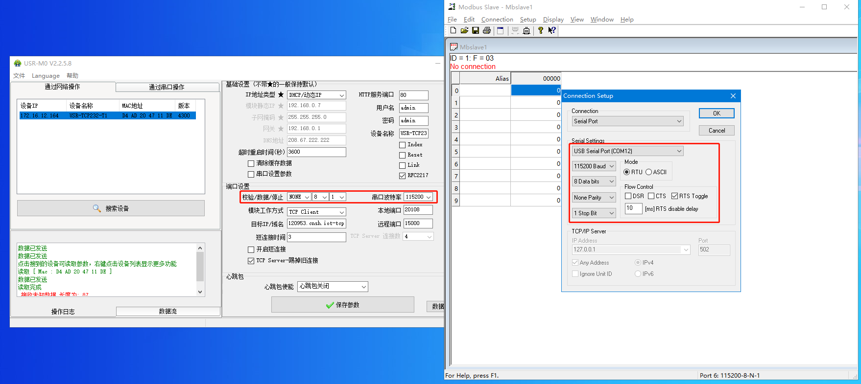四、Modbus slave軟件模擬串口設(shè)備,串口參數(shù)設(shè)置一致
