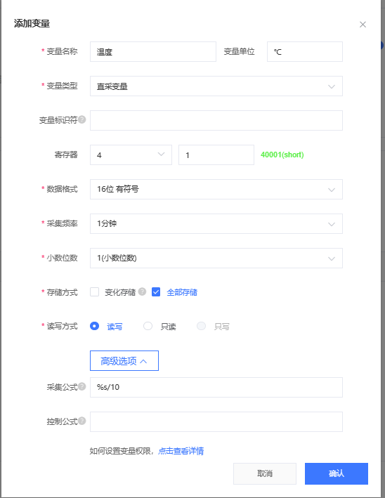 協(xié)議選擇通用Modbus/PLC/DL / Modbus / Modbus RTU,點擊添加變量