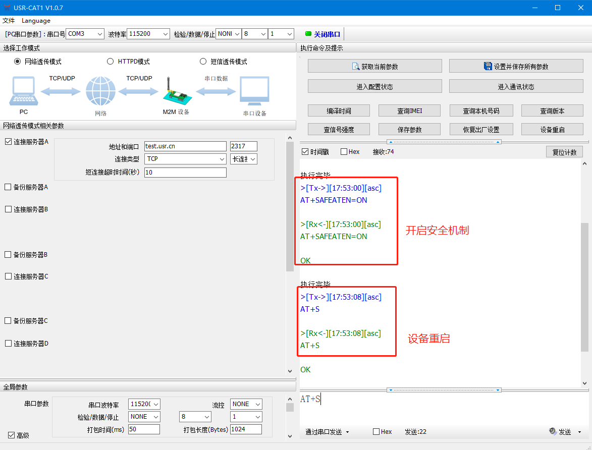 開(kāi)啟安全機(jī)制 AT+SAFEATEN=ON