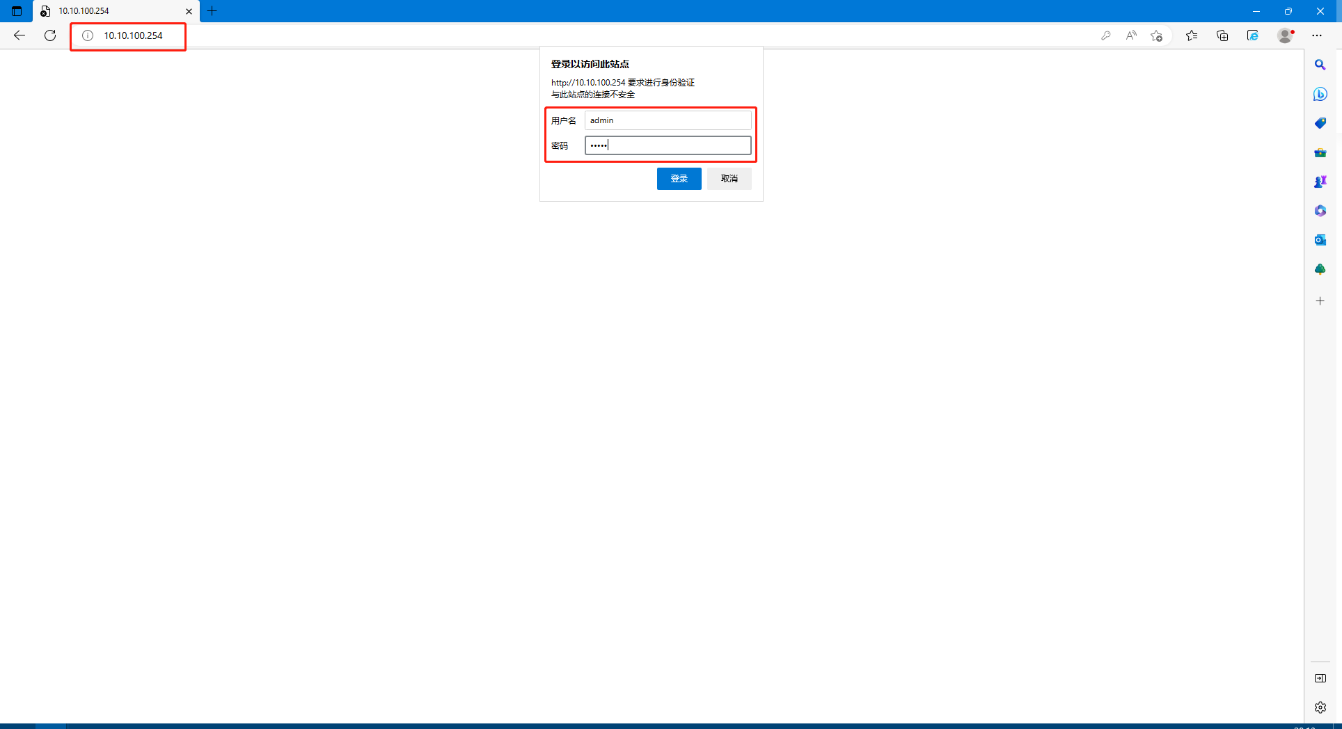 實(shí)際測(cè)試中電腦瀏覽器輸入10.10.100.254進(jìn)不去內(nèi)置網(wǎng)頁(yè)可參考五章節(jié)附件2排查
