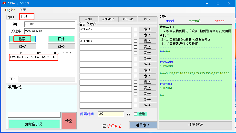 1、查詢(xún)W630獲取到的IP地址,打開(kāi)AT設(shè)置軟件:共有2中方式