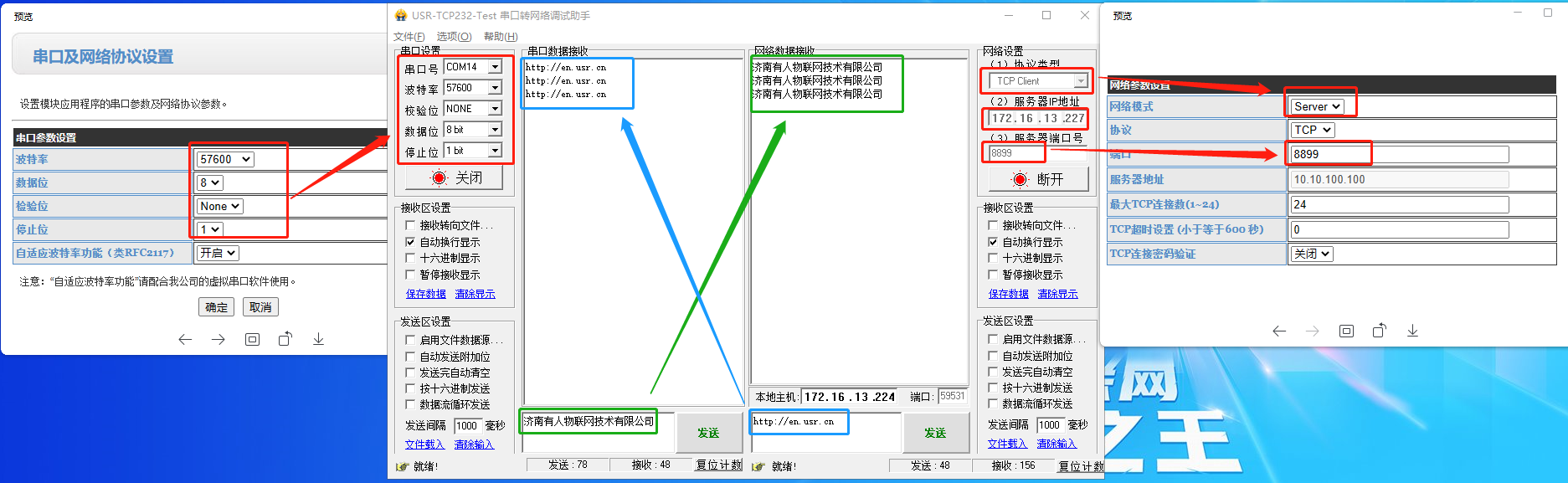 實(shí)際測(cè)試中調(diào)試助手的網(wǎng)絡(luò)端和串口端互發(fā)數(shù)據(jù)不通可參考五章節(jié)附件4排查