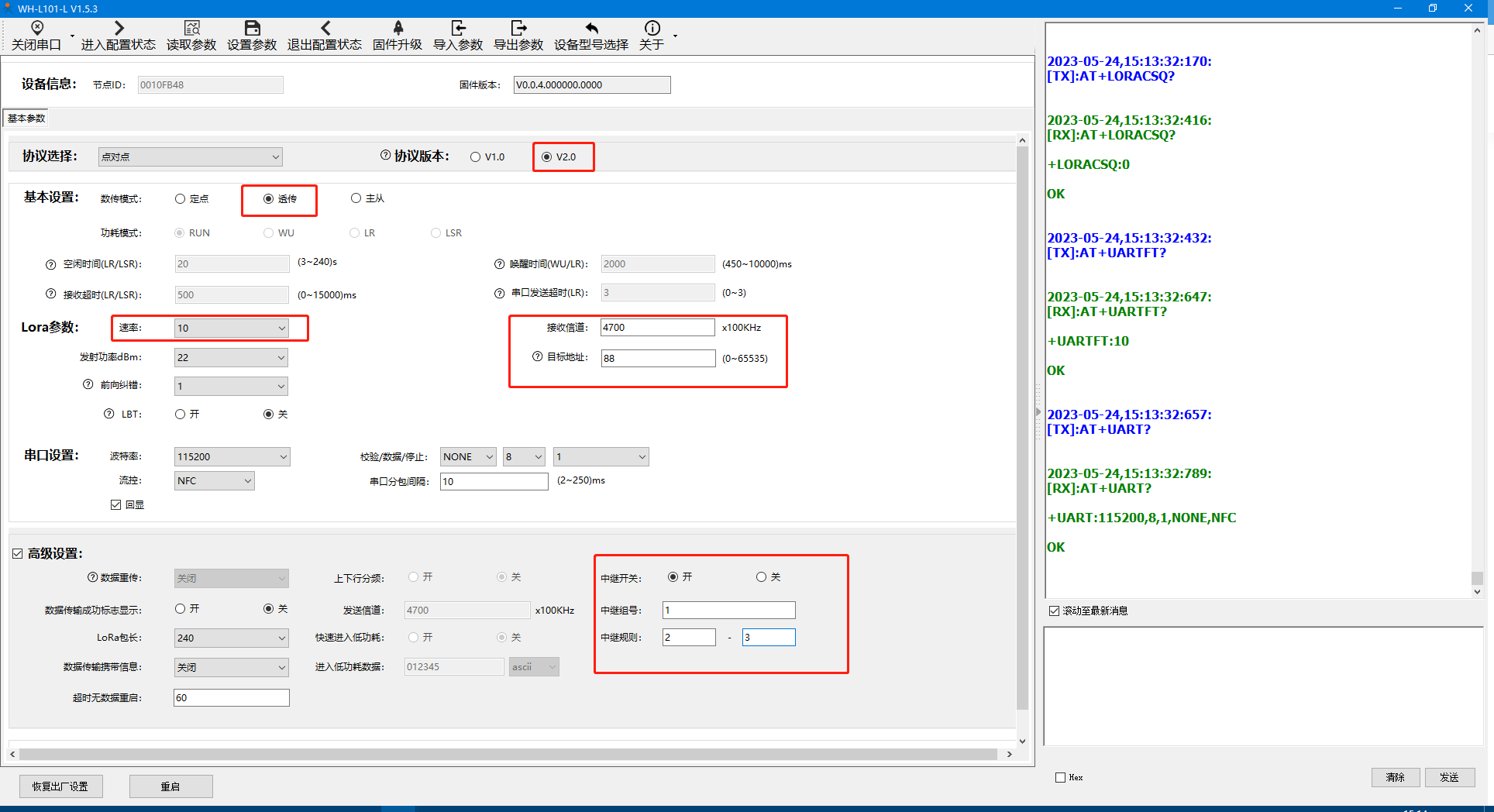 1、第一個WH-L101-L參數(shù)設(shè)置(發(fā)送端)