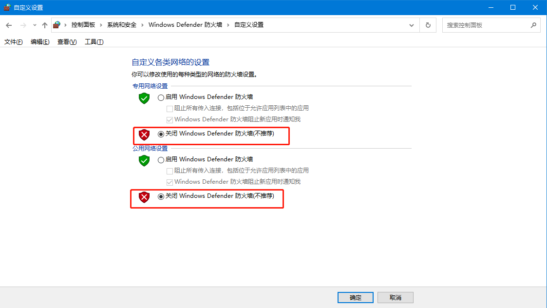 2.關(guān)閉電腦防火墻和殺毒軟件