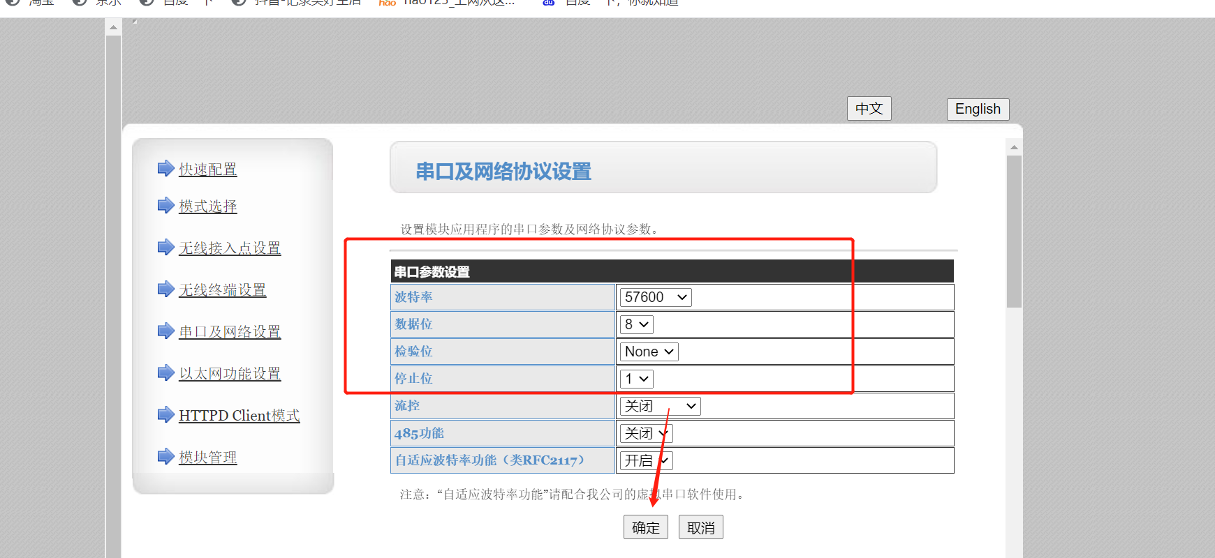 (1)串口及網(wǎng)絡(luò)參數(shù)設(shè)置:串口參數(shù)設(shè)置為和您終端設(shè)備的串口參數(shù)一致