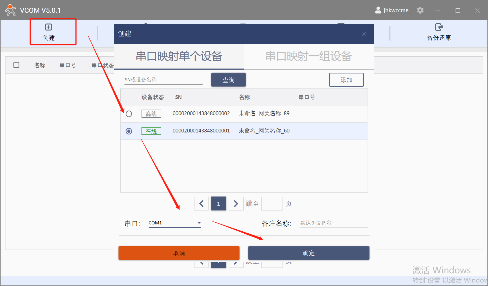 2.登錄有人賬號,創(chuàng)建虛擬串口com1