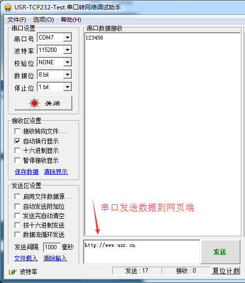 2:從串口端發(fā)送數(shù)據(jù)到WiFi模塊網(wǎng)頁端。