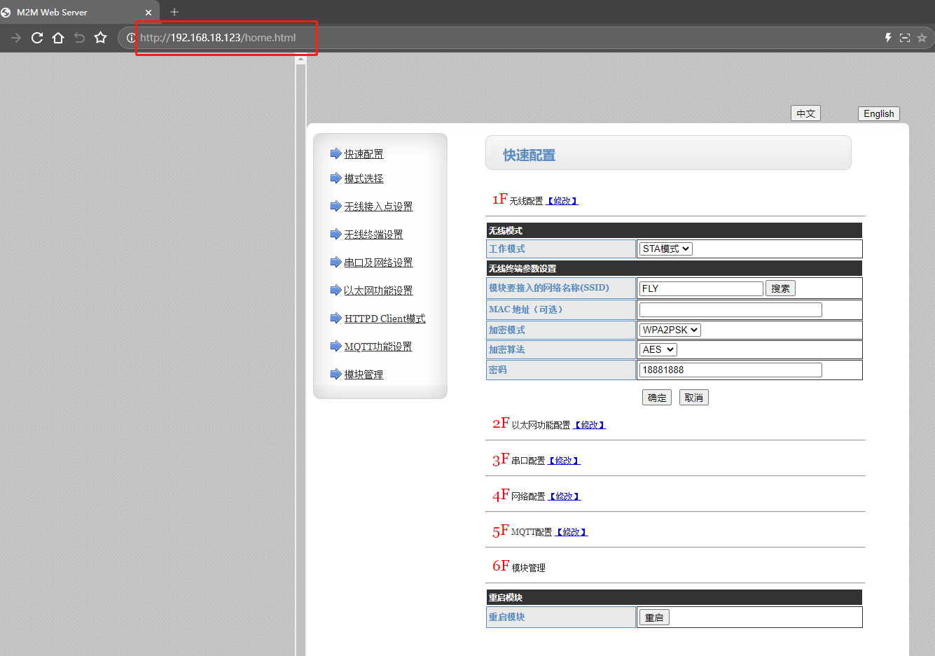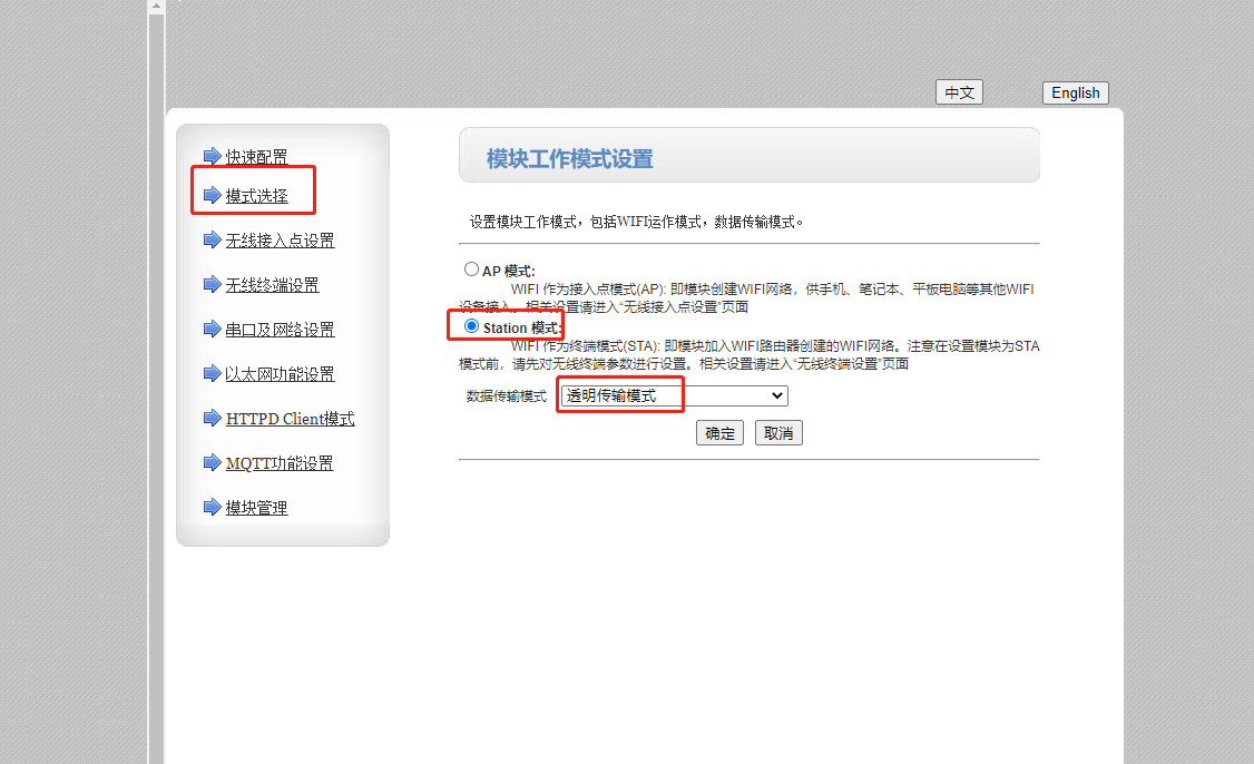 網(wǎng)頁上設(shè)置STA模式,開啟透明傳輸模式,點(diǎn)擊確定。不要重啟模塊,等所有參數(shù)都配置完了,再重啟W610。
