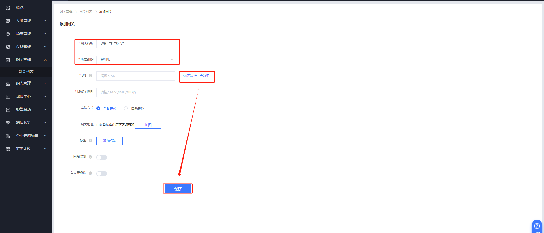 有人云IOT平臺---網(wǎng)關(guān)管理---網(wǎng)關(guān)列表---添加