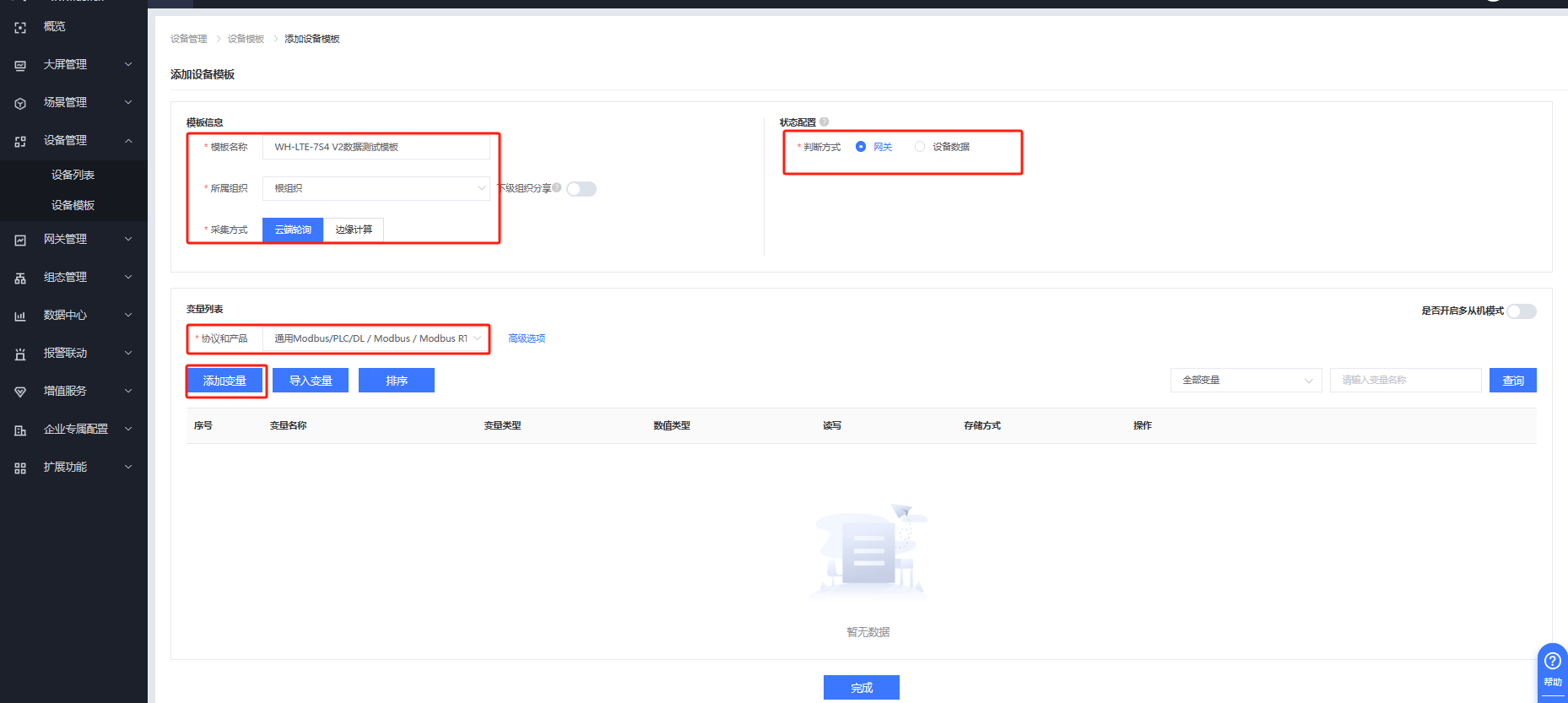 有人云IOT平臺---設(shè)備管理---設(shè)備模板---添加