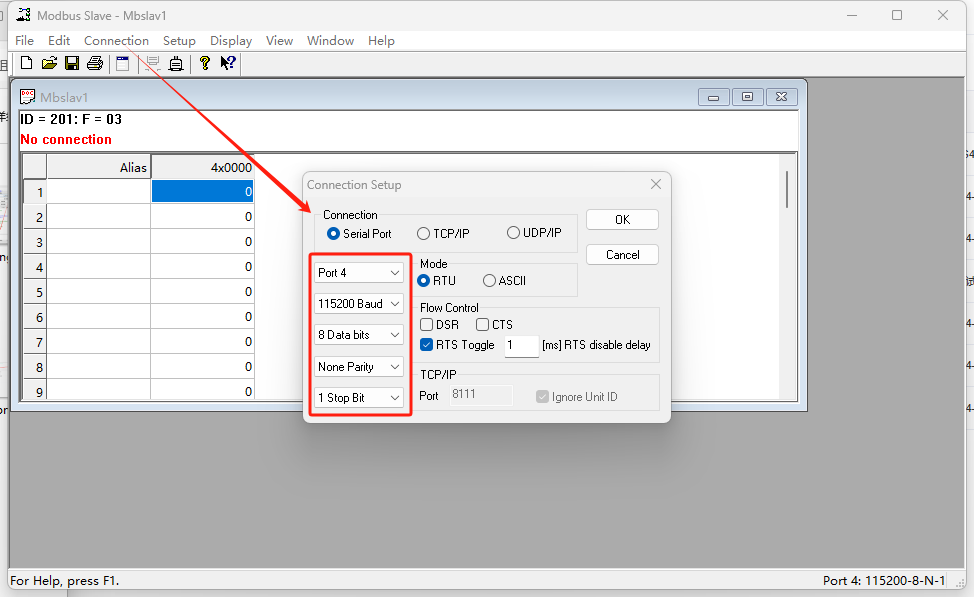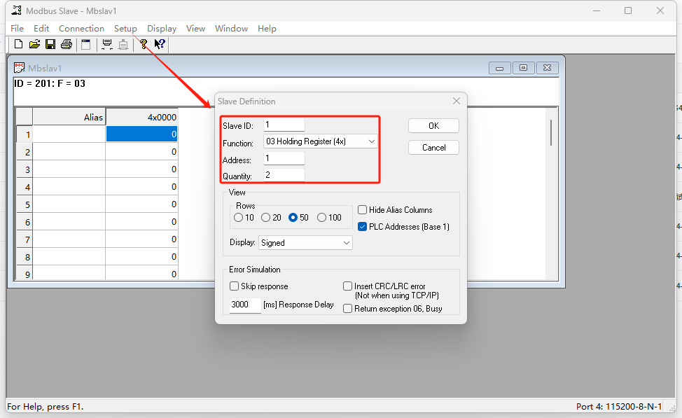 3.Modbus slave軟件參數(shù)設(shè)置