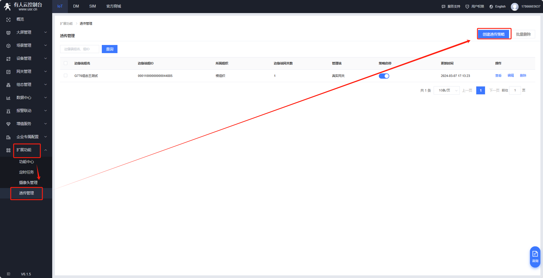 有人云---擴展功能---透傳管理---創(chuàng)建透傳策略