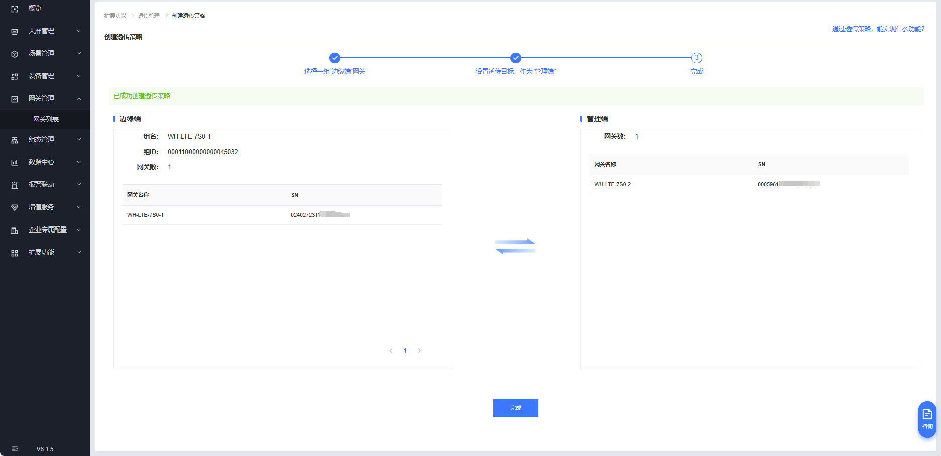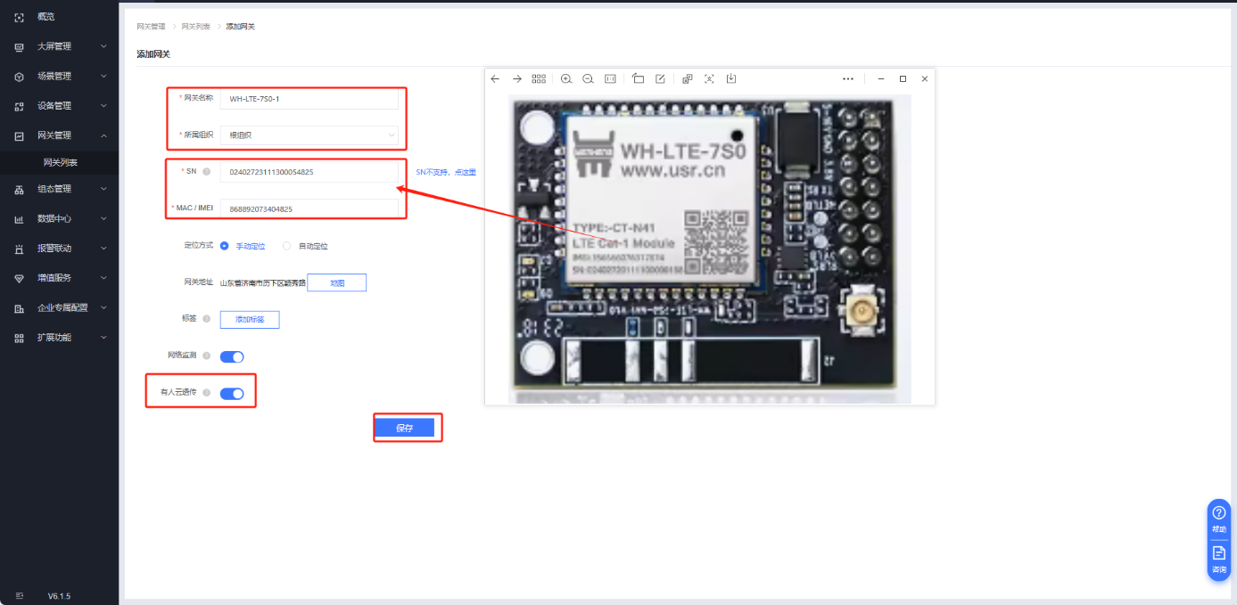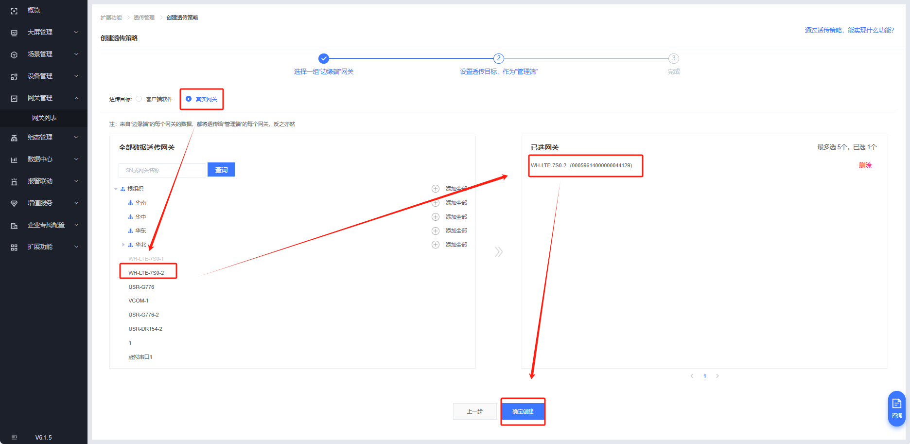 管理端選擇真實網(wǎng)關(guān),選則WH-LTE-7S0-2保存