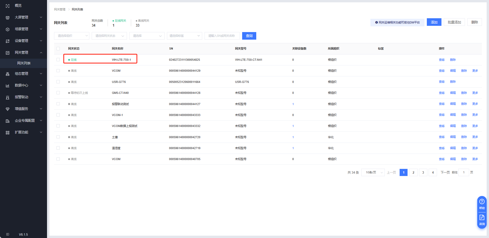 等待1分鐘即可看到WH-LTE-7S0-1在有人云端在線