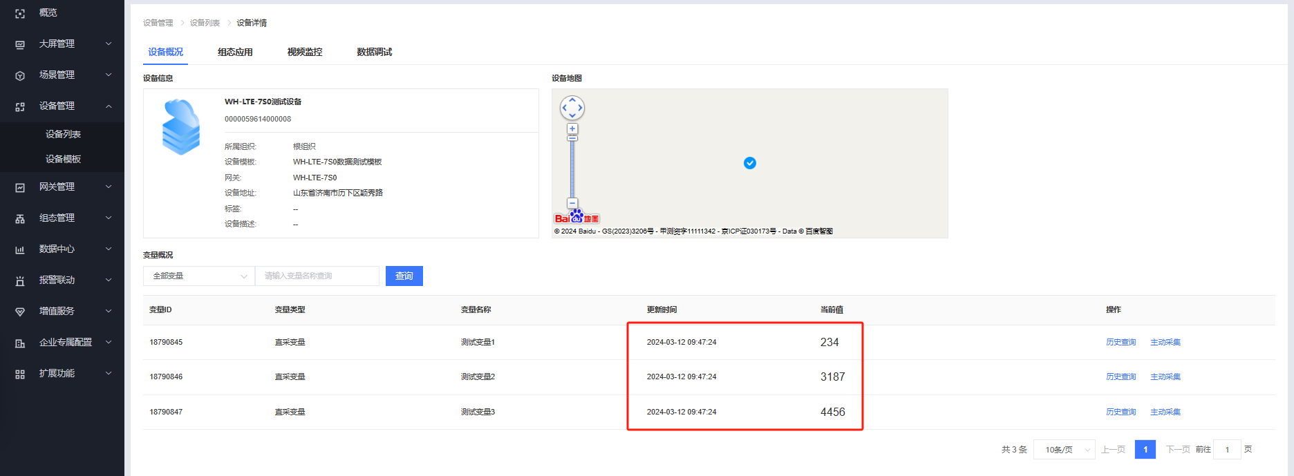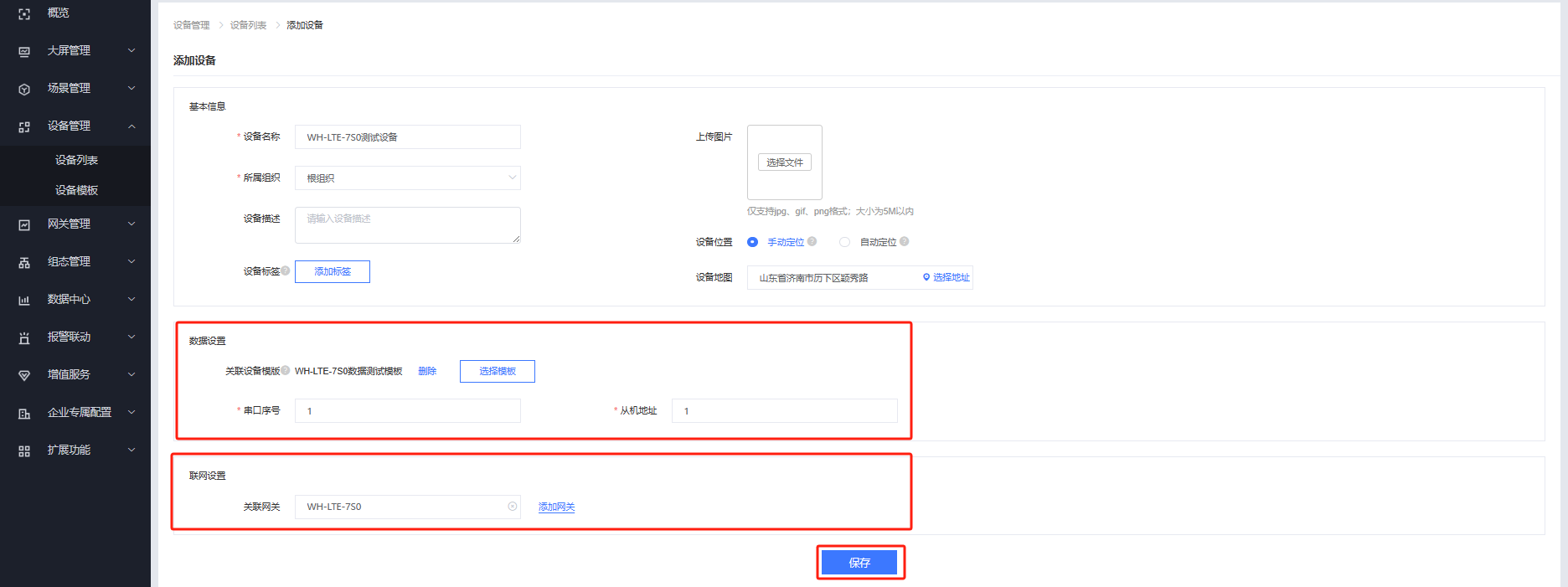 添加設(shè)備并關(guān)聯(lián)模板和網(wǎng)關(guān),點(diǎn)擊保存