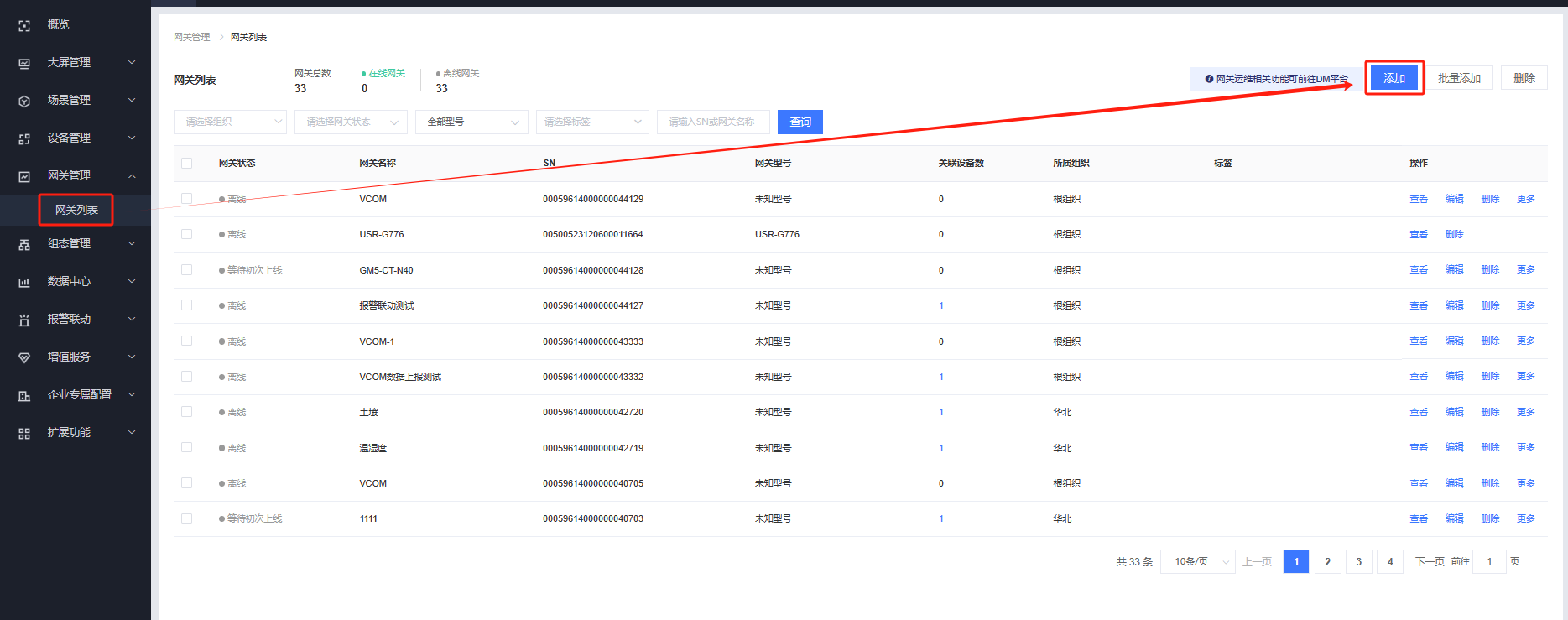 網(wǎng)關(guān)管理---網(wǎng)關(guān)列表---添加