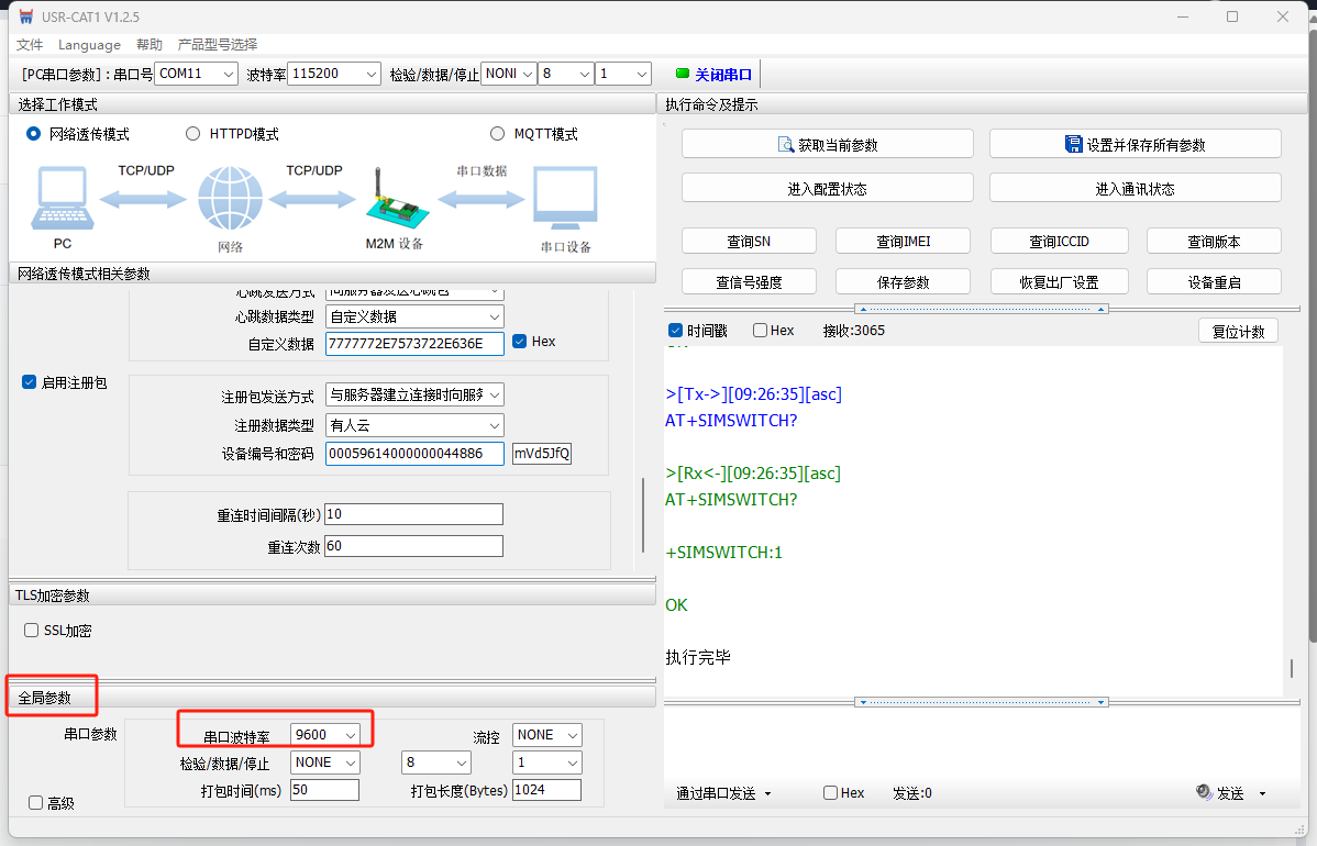 全局參數(shù),串口波特率改為9600(可不改,根據(jù)用戶從機(jī)實(shí)際情況確定,此例為修改串口參數(shù)示例)