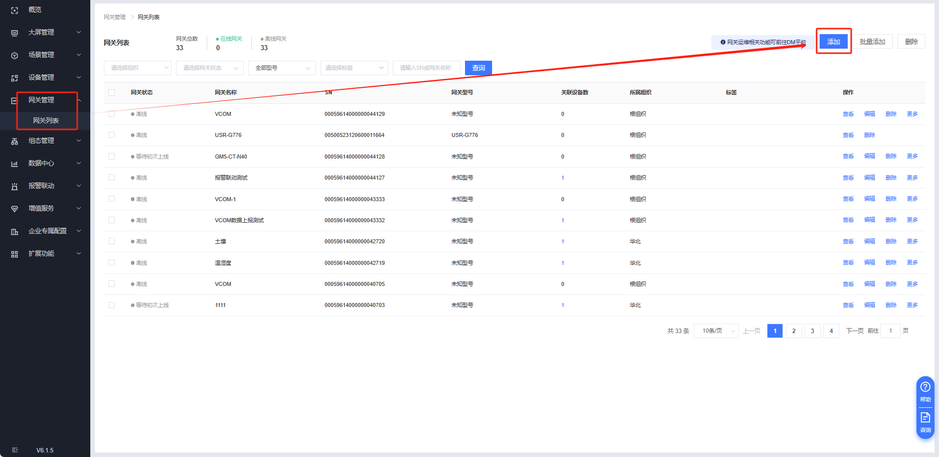 網(wǎng)關(guān)管理---網(wǎng)關(guān)列表---添加