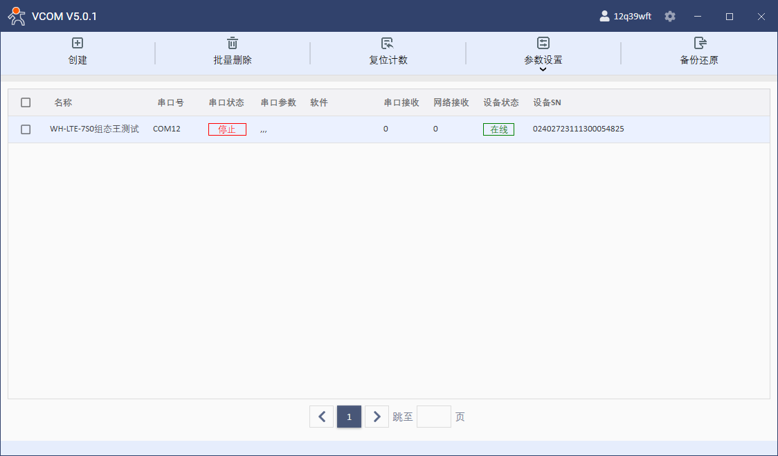 即可看到WH-LTE-7S0和虛擬串口COM12已經(jīng)建立了透傳關(guān)系。