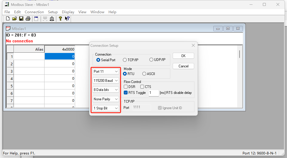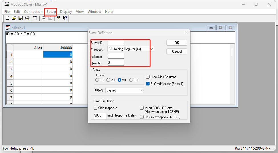4、Modbus Slave 軟件參數(shù)設(shè)置