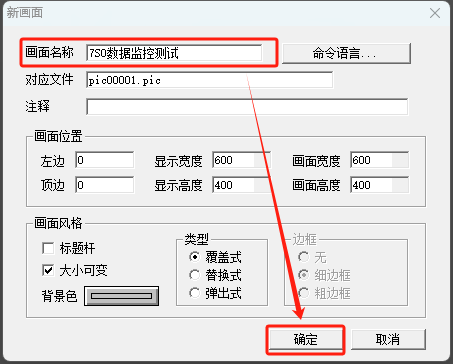 給畫面命名為“7S0數(shù)據(jù)監(jiān)控測試”